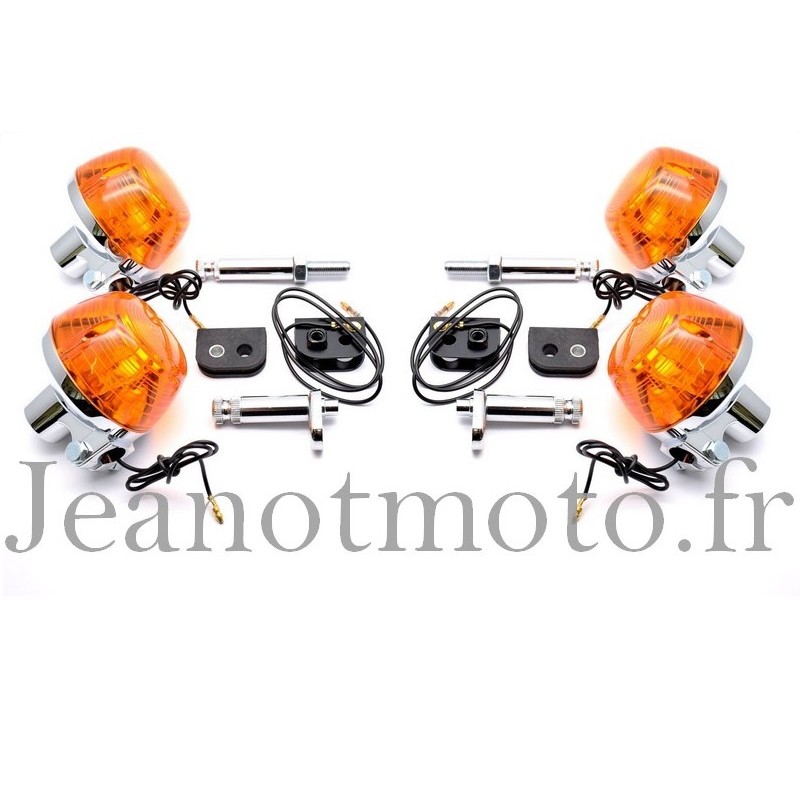 Vous commandez et recevez le jeu neuf de quatre clignotants avant et arrières neufs avec leur kit de fixation complet qui sont sur la photo très explicite faite par nos soins.