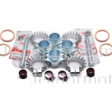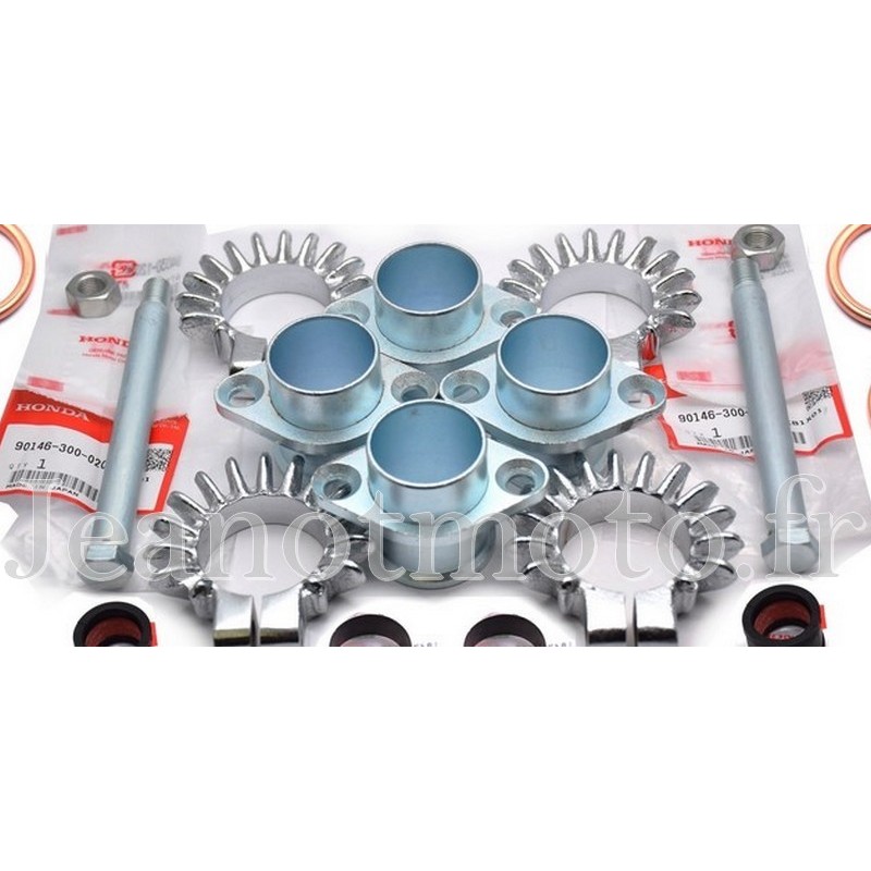 Les 4 Pipes, les 4 brides, les deux tiges filetées, les 2 caoutchoucs et les 2 colliers de liaison et les 4 joints cuivrés.