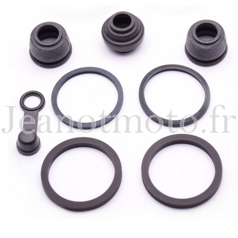 Soit les deux joints toriques, les deux joints cache poussière, les trois soufflets de coulisseaux et le capuchon de vis de purge