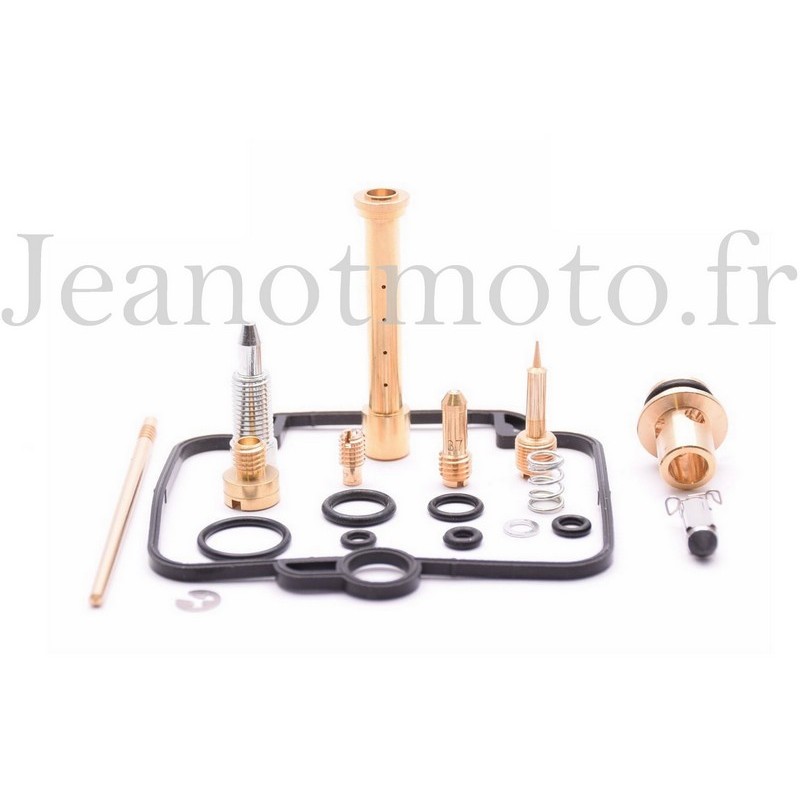 Le joint de cuve, les joints toriques, le pointeau, le siège de pointeau, les gicleurs de ralenti et principal, le tube d'émulsion, l'aiguille de boisseau et son puits, la vis de richesse avec sa rondelle et son ressort.