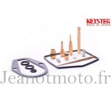 Le joint de cuve, le joint de chapeau, les joints toriques, le pointeau, l'aiguille de boisseau, les gicleurs,le tube d'émulsion et la vis de richesse, son ressort.