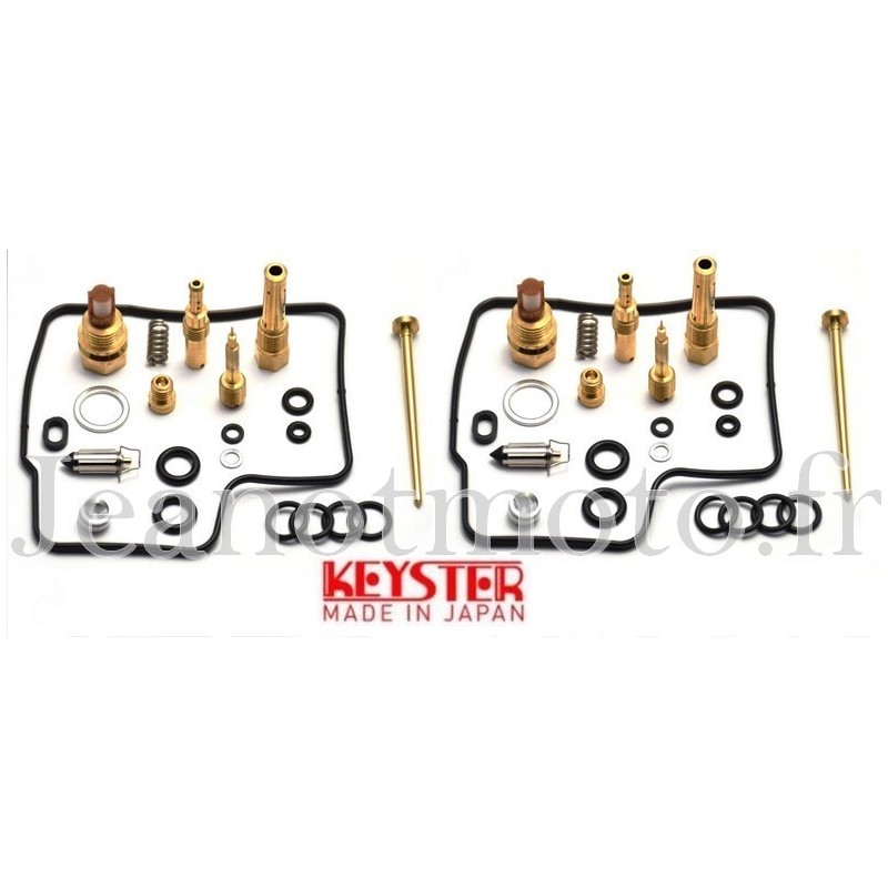 Les 2 aiguilles, les 2 puits de celles ci, les 2 gicleurs principaux et secondaires, les 2 tubes d'émulsion, la 2 vis de richesse, les 2 ressorts et les 2 rondelles de celles ci.