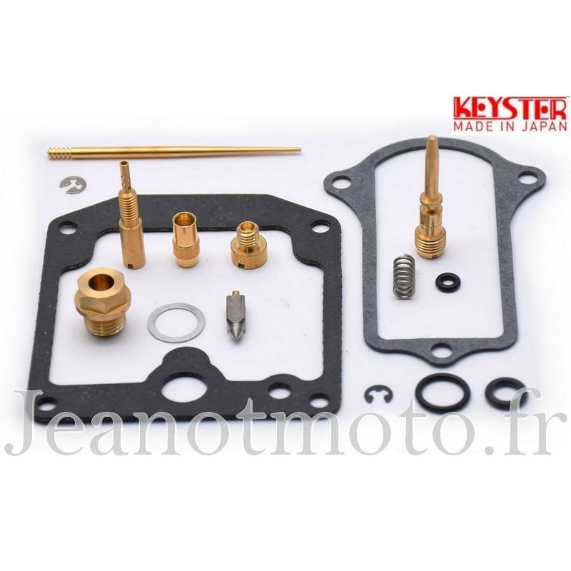Le joint de cuve, le joint de chapeau, les joints toriques, le pointeau, le siège de pointeau, le gicleur de ralenti, le gicleur principal, l'aiguille de boisseau, le puits et l'agrafe de réglage de celle-ci vis, la vis de richesse, son joint, sa rondelle et son ressort etc, etc ...