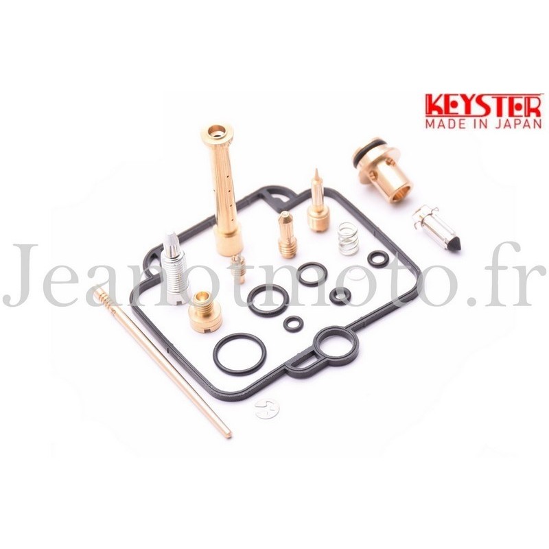 Le joint de cuve, les joints toriques, le pointeau, le siège de pointeau, les gicleurs de ralenti et principal, le tube d'émulsion, l'aiguille de boisseau et son puits, la vis de richesse avec sa rondelle et son ressort.