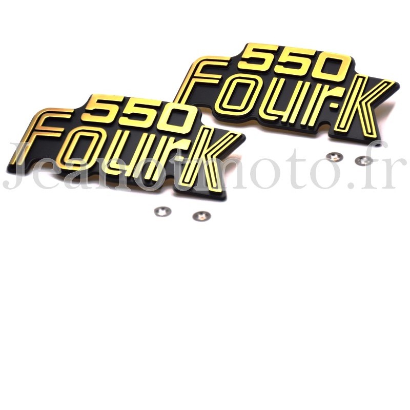 Vous commandez et recevez les deux logos neufs "550 Four-K" de caches latéraux droit et gauche qui sont sur les photos très explicites faites par nos soins.